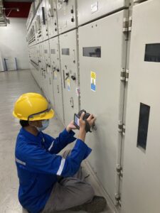 Pemeriksaan suhu berbasis kamera inframerah untuk menemukan titik panas (hotspots) pada panel listrik, motor, bearing, dan sistem mekanikal lainnya. Thermography membantu pencegahan risiko kebakaran, kegagalan listrik, dan overheating pada peralatan.
